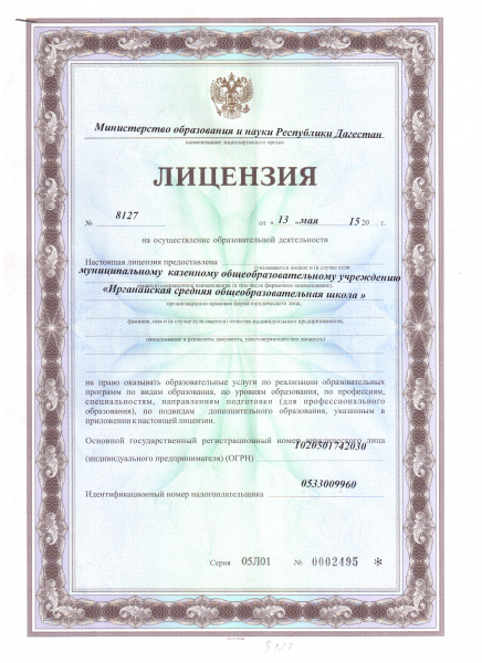 Полное наименование образовательной организации* Муниципальное казенное общеобразовательное учреждение "Ирганайская средняя общеобразовательная школа"